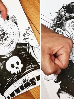 Un dessinateur interagit avec son dessin