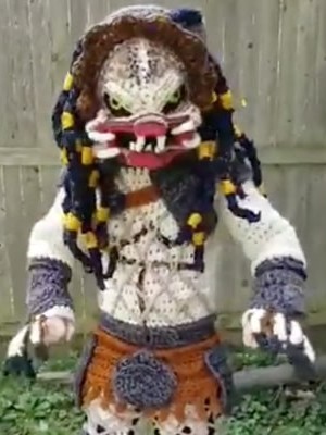 Elle tricote un costume de "Predator" pour son fils