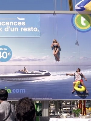 Un couple en chair et en os sur une affiche Transavia