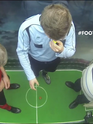 Un terrain de football minuscule installé dans une gare