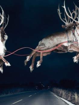 Une Mercedes croise le vrai traineau du Père Noël