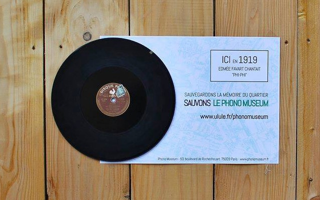 De manière totalement artisanale, Phono Museum a confectionné des affiches intégrant des disques enregistrés par les artistes qui se produisaient dans ces lieux mythiques. Nous sommes ensuite allés coller ces affiches à l’emplacement exact où se trouvaient ces music-halls. Une manière de rappeler qu’à travers ses collections, le Phono Museum contribue activement à la sauvegarde de la mémoire du quartier. Pour aider le Phono Muséum, il reste quelques jours pour contribuer à sa campagne de financement participatif sur ulule.fr/phonomuseum